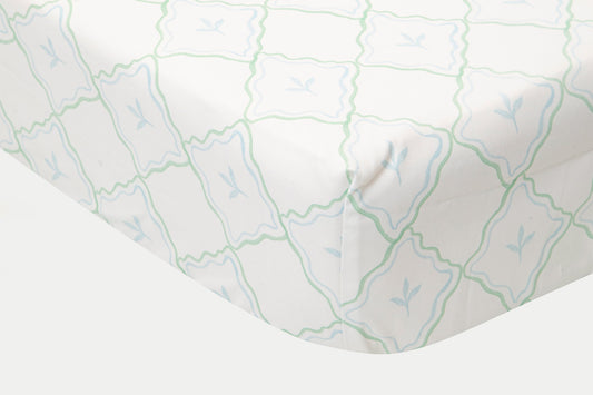 CRIB FITTED SHEET TREILLAGE BABY BLUE