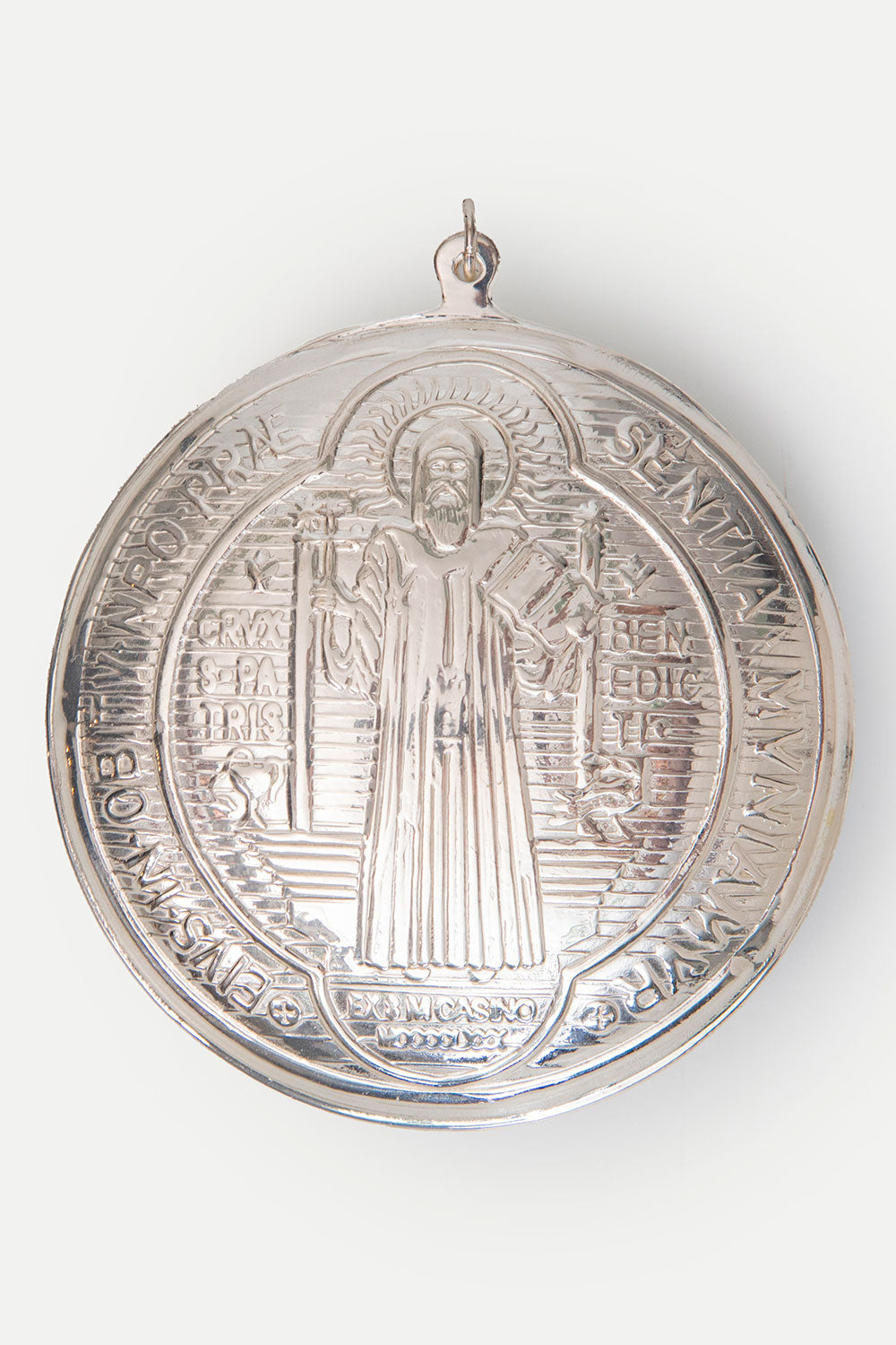 The medallion with the image of Saint Benito engraved is beautifully crafted by Mexican artisans. Silver medal decoration adds a touch of faith, and love adding the most special detail of your kids/baby's room...