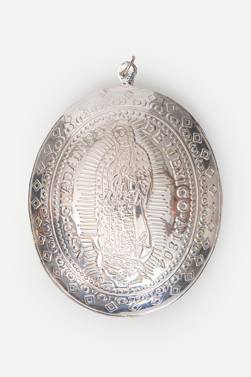 The medallion with the image of the Virgin of Guadalupe engraved is beautifully crafted by Mexican artisans. Honoring the sacred spirit of Mexico's beloved patroness, our Virgen de Guadalupe silver medal decoration adds a touch of faith, and love adding the most special detail of your kids/baby's room...