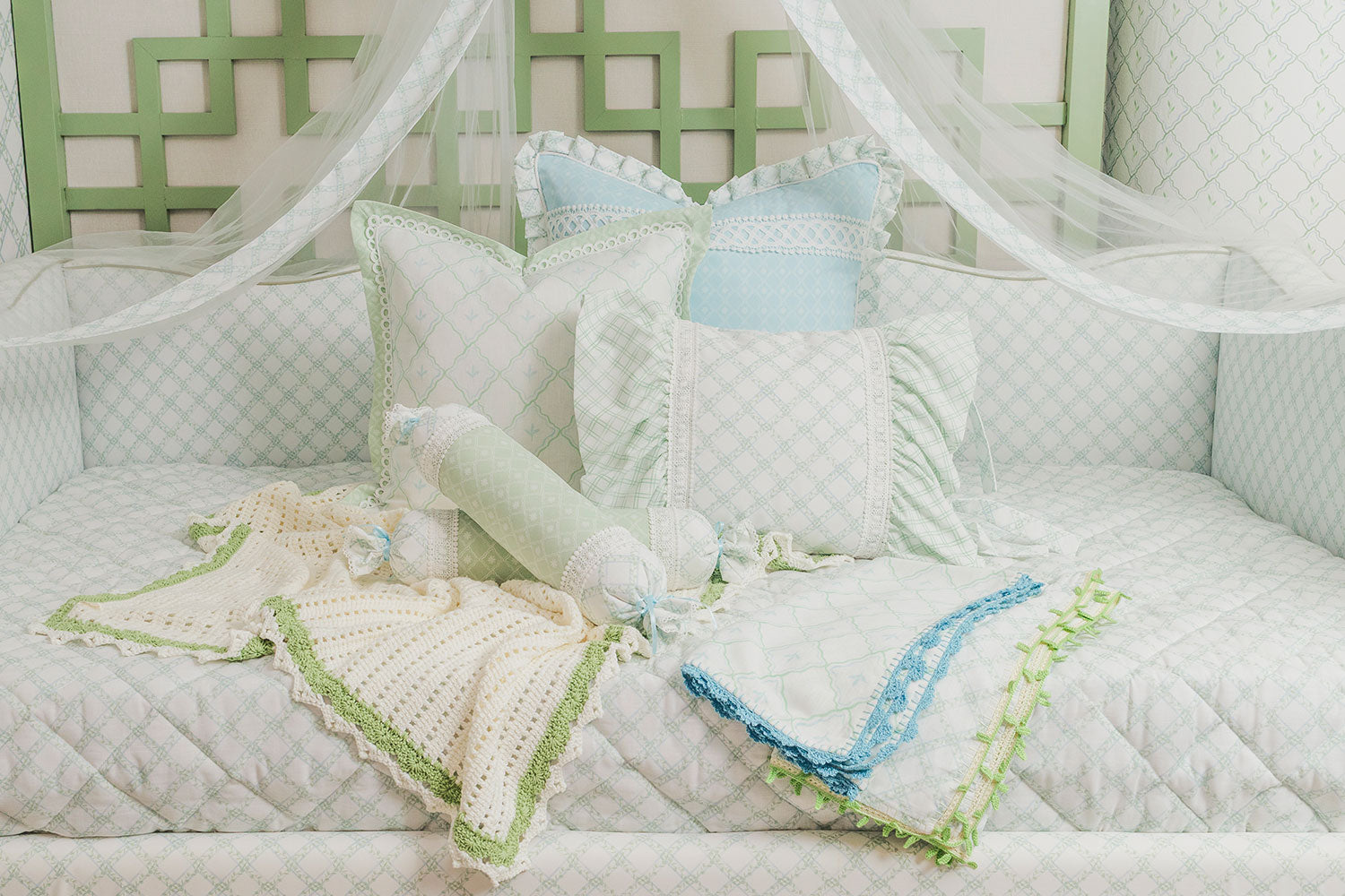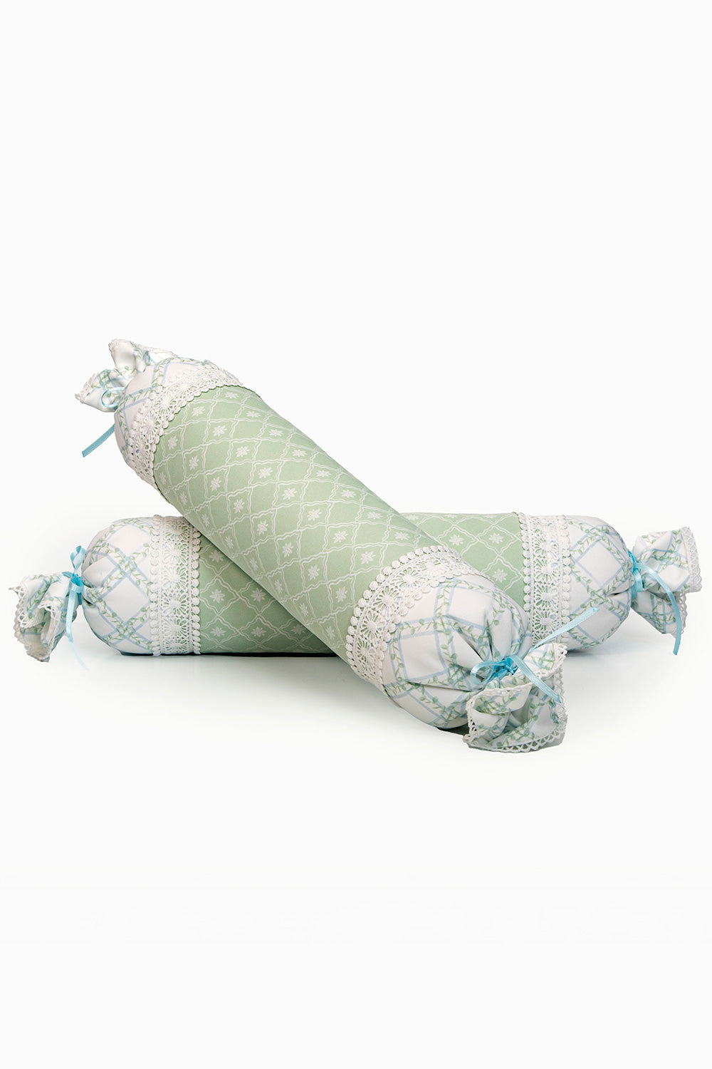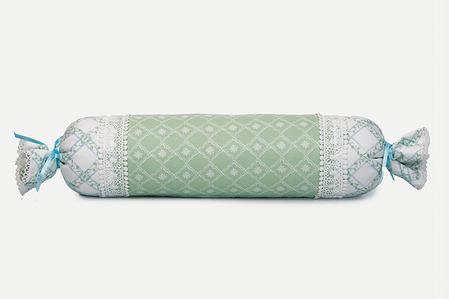Bolster Pillows made from a soft-to-the-touch, durable, and flexible drill blend (80% polyester, 15% cotton, 5% spandex). Printed with our exclusive textile designs and finished with cotton guipure accents. Perfect for adding comfort and a splash of color to your little one’s room.