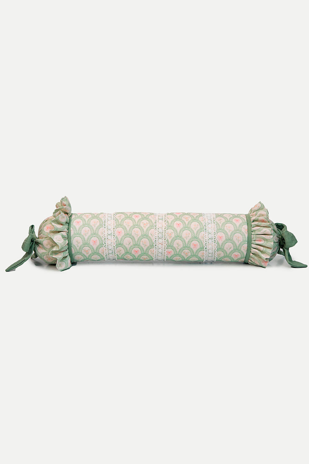 Bolster Pillows made from a soft-to-the-touch, durable, and flexible drill blend (80% polyester, 15% cotton, 5% spandex). Printed with our exclusive textile designs and finished with cotton guipure accents. Perfect for adding comfort and a splash of color to your little one’s room.