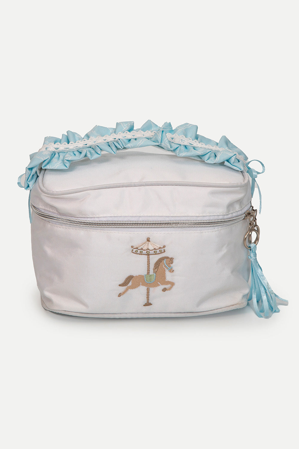 Keep your little adventurer’s belongings organized and stylish with our pouches. A trunk with a unique design, featuring embroidery and delicate lace details.