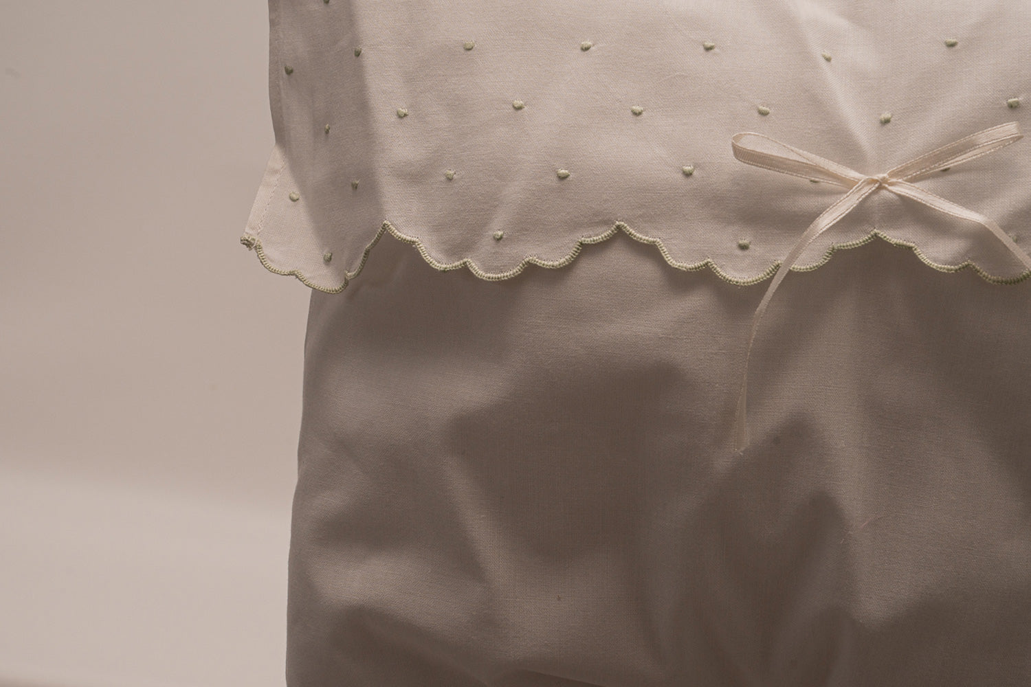 This delicate white cotton pillow with soft green detailing features a charming design that brings both comfort and style. Its versatile look fits beautifully into a variety of nursery themes, creating a warm, love-filled atmosphere.
