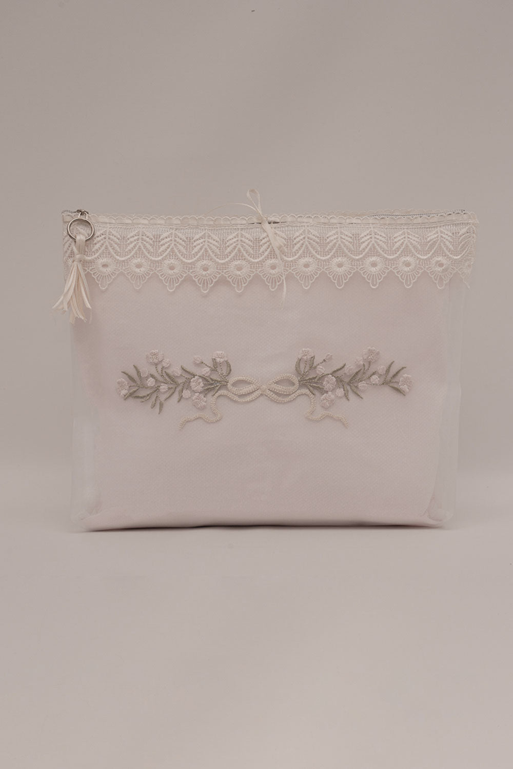 Keep your little adventurer’s belongings organized and stylish with our pouches. Two adorable bags featuring a unique design with embroidery and delicate lace details.
