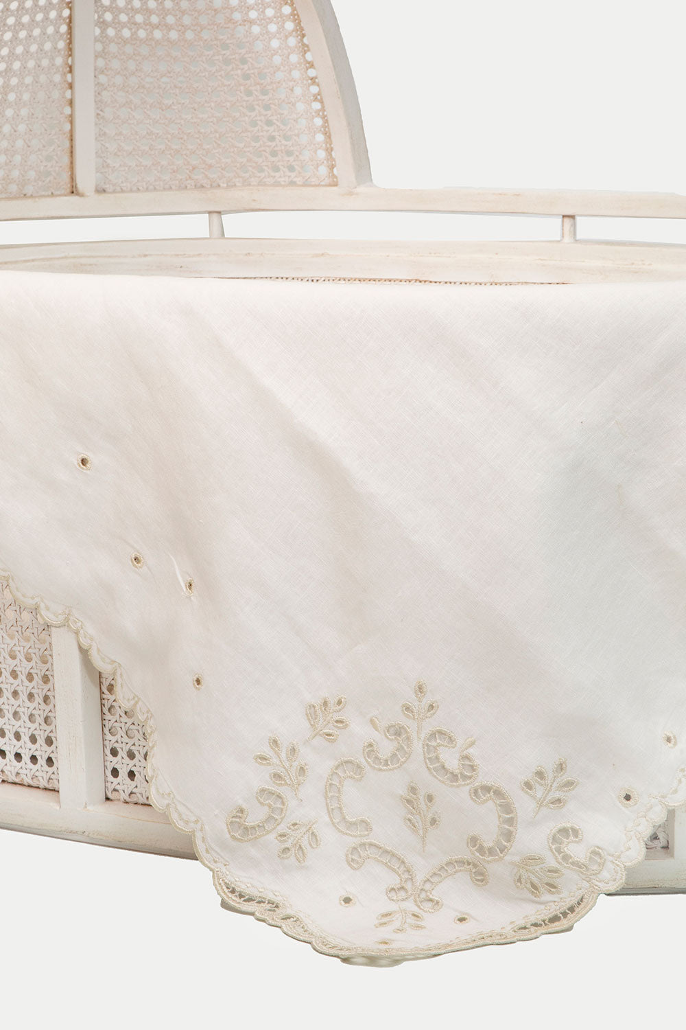 Make your baby’s arrival a truly special moment with this exquisite 100 % linen toquilla delicately hand-embroidered using the historic Richelieu (cutwork) technique in soft beige thread. This linen toquilla is ideal for celebrating baby’s arrival use it in the hospital to create a memorable first introduction, or display it at home as part of your baby’s cherished decor. It’s a keepsake piece as timeless as your love.