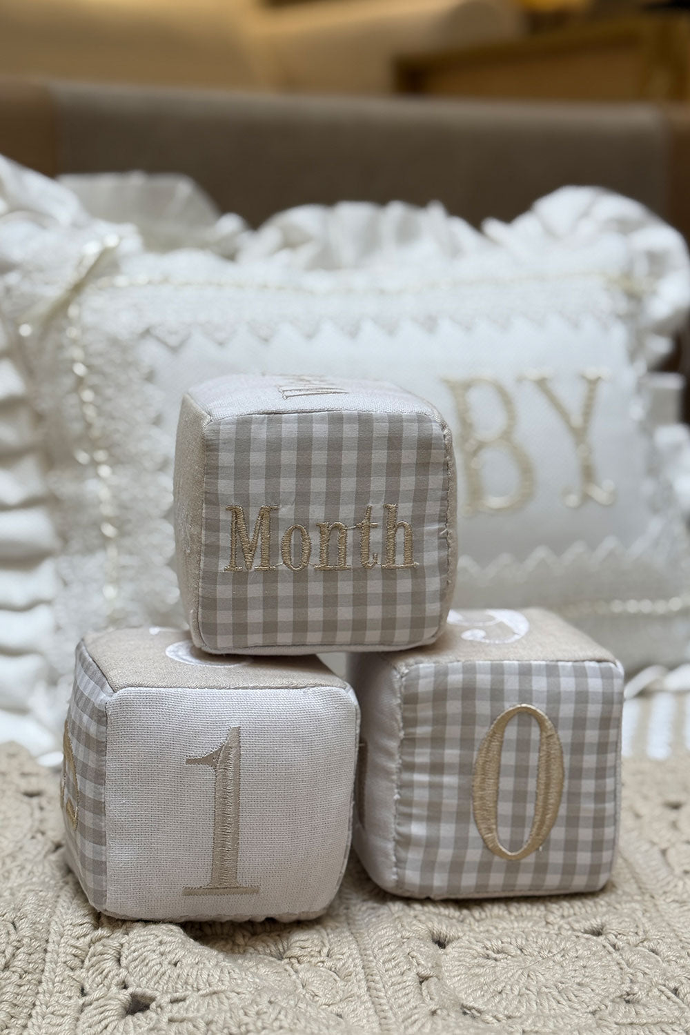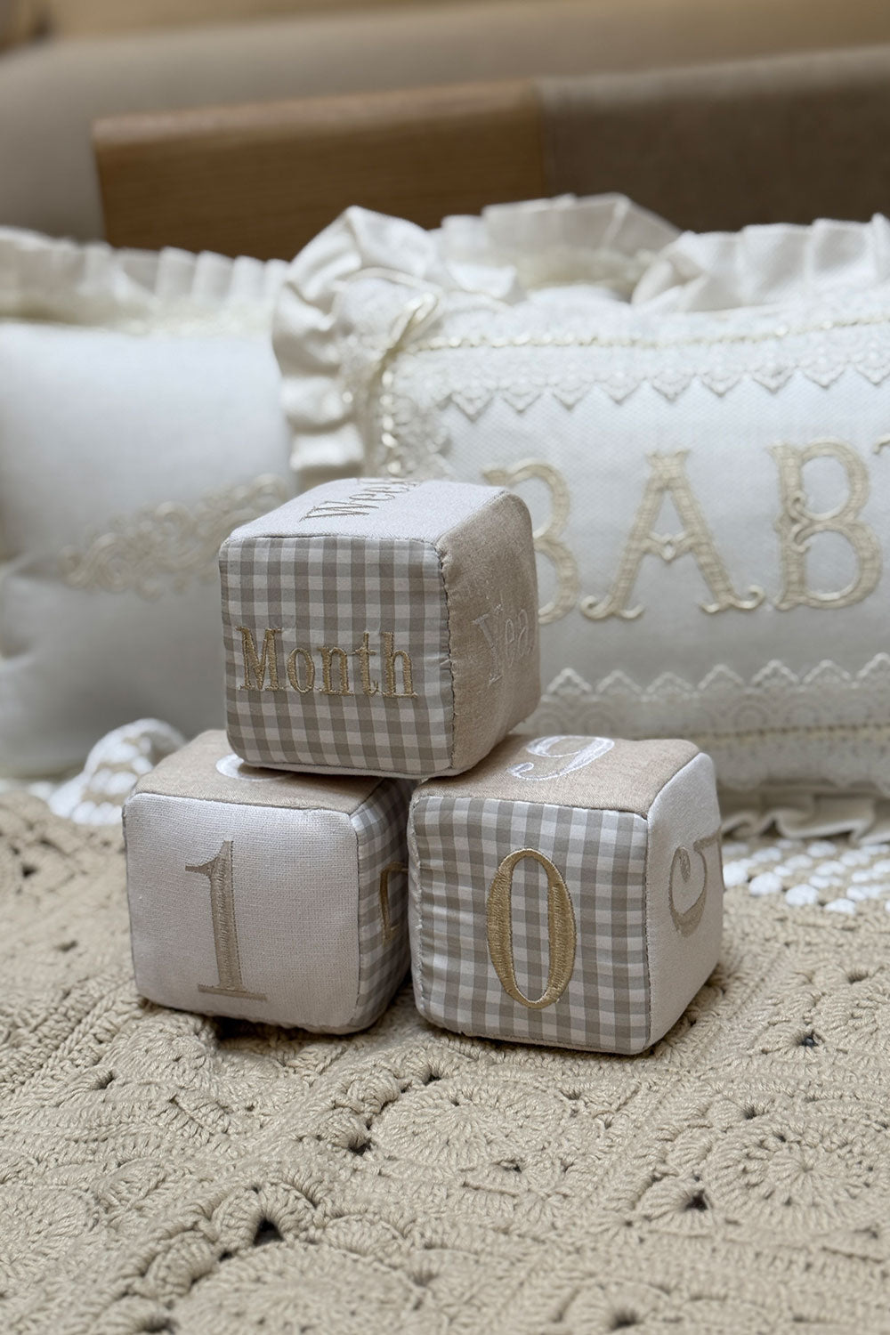 Celebrate your baby's milestones with our embroidered cubes for each month. Capture the most special moments of your baby’s life with these adorable cubes, perfect for creating lasting memories and capturing the essence of every stage of your little one’s growth.