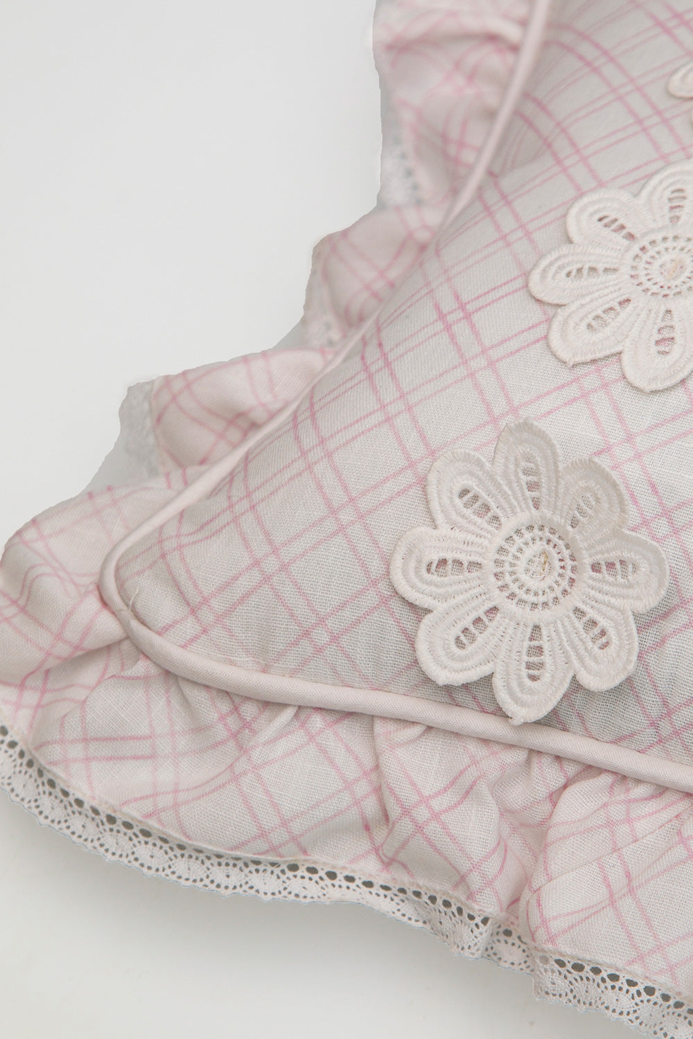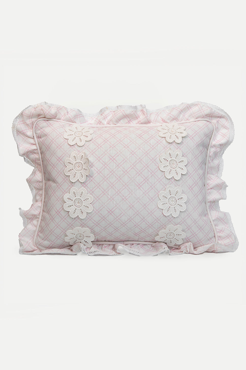 Cushion made from a soft-to-the-touch, durable, and flexible fabric blend (90% polyester, 10% linen blend). Printed with our exclusive textile designs and finished with cotton guipure accents. Perfect for adding comfort and a splash of color to your little one’s room.