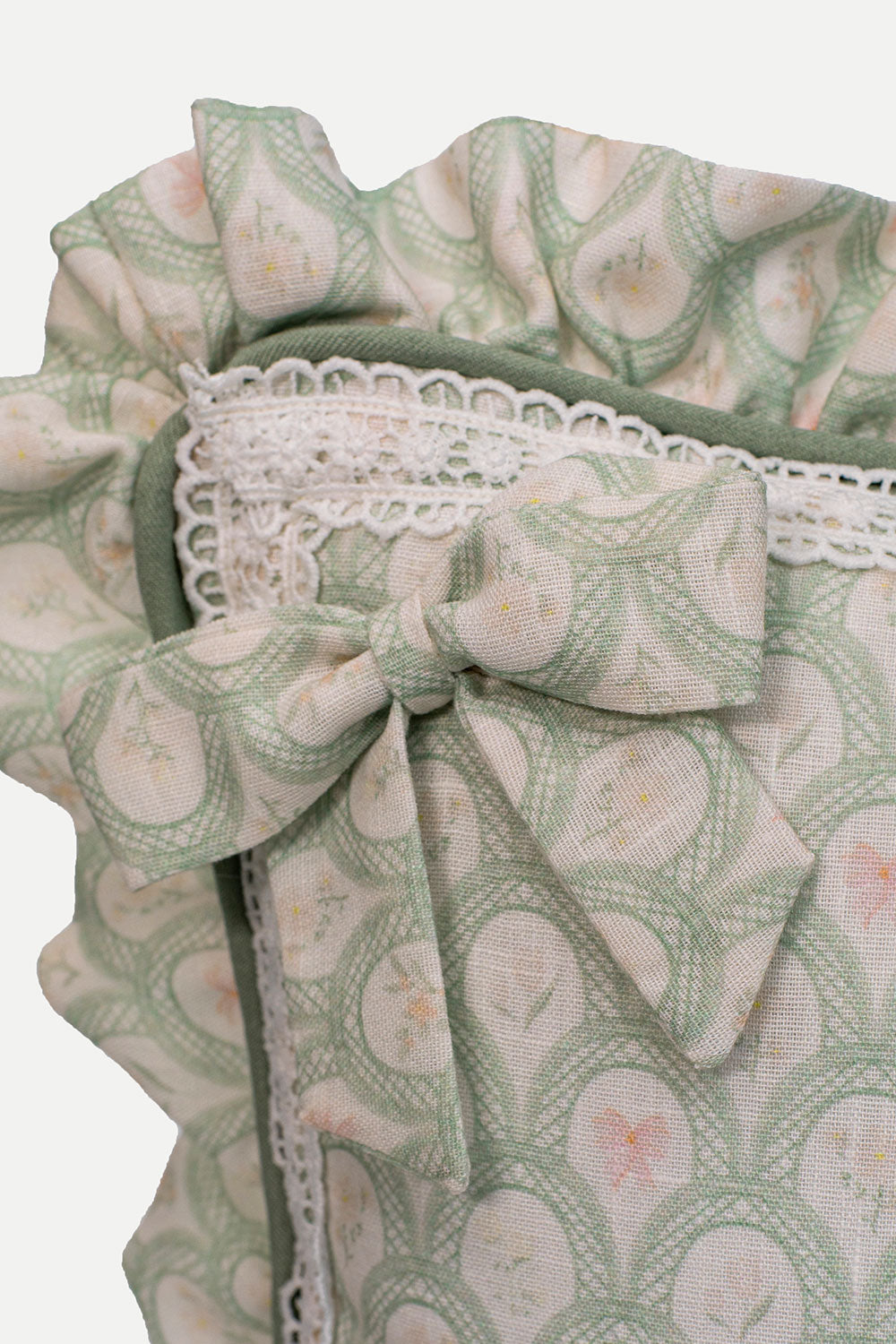 Cushion made from a soft-to-the-touch, durable, and flexible blend (90% polyester, 10% linen blend). Printed with our exclusive textile designs and finished with cotton guipure accents. Perfect for adding comfort and a splash of color to your little one’s room.