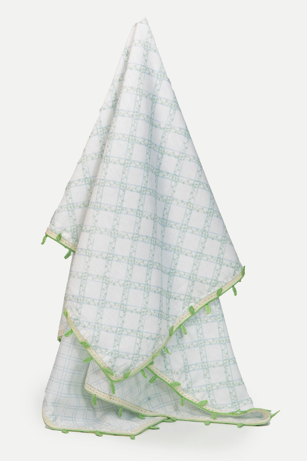 Wrap your baby in warmth, shield them from the sun, or add a touch of charm to their crib with our adorable blankets. Made from a 90% polyester, 10% linen blend, featuring our exclusive designs and finished with delicate hand-crocheted edges in a variety of patterns. Each blanket is a unique treasure — a special companion for your little one. Carefully tested for softness and baby-safe comfort.